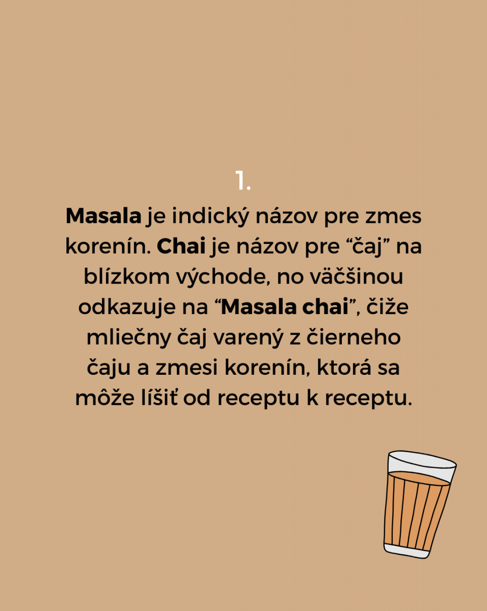 Masala je tradičný indický čaj, ktorý sa varí z rôznych druhov korenín, do ktorých sa pridáva mlieko, a necháva sa dlho variť alebo niekoľkokrát po sebe zovrieť.
