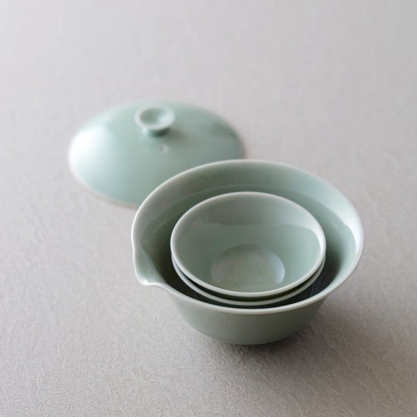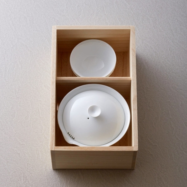 Japonský porcelánový čajový set v zelenej farbe, pozostáva z čajníku (tzv. hobin) s jemnými zúbkami, ktorý krásne scedí aj najjemnejší japonský čaj, a dvoch šálok. Je zabalený v drevenom darčekovom boxe z Paulownia dreva. Ideálny darček pre milovníka čajov a japonskej jednoduchosti.